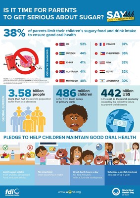 สมาพันธ์ทันตแพทย์โลกเผยทั่วโลกมีพ่อแม่เพียง 38% ที่จำกัดการบริโภคน้ำตาลของลูกเพื่อสุขภาพช่องปากที่ดี - ใน 10 ประเทศที่มีการสำรวจ สหรัฐอเมริการั้งอันดับรองสุดท้าย โดยมีพ่อแม่ไม่ถึง 1 ใน 3 ที่จำกัดการบริโภคน้ำตาลของลูก - สหราชอาณาจักรรั้งอันดับสูงสุด โดยพ่อแม่เกินครึ่งจำกัดการบริโภคน้ำตาลของลูก - พ่อแม่ที่พาลูกไปตรวจสุขภาพฟันอย่างน้อยปีละครั้งมีไม่ถึงครึ่ง สมาพันธ์ทันตแพทย์โลก (FDI World Dental Federation: FDI) มอบหมายให้บริษัท YouGov ทำการสำรวจใน 10 ประเทศพัฒนาแล้วและประเทศกำลังพัฒนา ซึ่งผลปรากฏว่า มีพ่อแม่ไม่ถึงครึ่งที่จำกัดการบริโภคอาหารและเครื่องดื่มที่มีน้ำตาลสูง เช่น ลูกกวาด น้ำอัดลม และน้ำผลไม้ เพื่อปกป้องสุขภาพฟันของลูก ผลสำรวจดังกล่าวได้รับการเผยแพร่ก่อนถึงวันทันตสาธารณสุขโลก (World Oral Health Day: WOHD) ซึ่งตรงกับวันที่ 20 มีนาคมของทุกปี โดยมาจากการสอบถามพ่อแม่ที่มีลูกอายุไม่เกิน 18 ปี ว่า "คุณเคยทำสิ่งเหล่านี้เพื่อสุขภาพช่องปากที่ดีของลูกหรือไม่" ผลที่ได้เผยให้เห็นว่า มีพ่อแม่ในสหรัฐอเมริกาไม่ถึง 1 ใน 3 ที่จำกัดการบริโภคน้ำตาลของลูก ส่วนพ่อแม่ในสหราชอาณาจักรกระตือรือร้นมากที่สุด โดยพ่อแม่เกินครึ่งจำกัดการบริโภคน้ำตาลของลูก นอกจากนี้ พ่อแม่ในสหราชอาณาจักรยังพาลูกไปตรวจสุขภาพฟันอย่างน้อยปีละครั้งมากที่สุด ส่วนอีก 9 ประเทศมีพ่อแม่ที่พาลูกไปตรวจสุขภาพฟันอย่างน้อยปีละครั้งไม่ถึงครึ่ง Dr. Gerhard K. Seeberger ประธาน FDI กล่าวว่า "โรคในช่องปากเป็นภาระจากโรคที่สามารถป้องกันได้ และผลสำรวจนี้แสดงให้เห็นว่าเราสามารถทำอะไรได้มากกว่านี้เพื่อหลีกเลี่ยงปั ญหาสุขภาพช่องปากตั้งแต่เด็ก" โรคในช่องปากมีปัจจัยเสี่ยงร่วมกับโรคไม่ติดต่ออื่น ๆ เช่น การสูบบุหรี่ การดื่มเครื่องดื่มแอลกอฮอล์ และการรับประทานอาหารที่ไม่ดีต่อสุขภาพ โดยเฉพาะอาหารที่มีน้ำตาลสูง นอกจากนั้นยังมีความไม่เท่าเทียมทางสุขภาพอันเป็นผลมาจากภาระของโรคไม่ติดต่ อ Dr. Seeberger กล่าวว่า "สาขาวิชาสุขภาพช่องปากเป็นความรู้เฉพาะทางที่แยกออกมาจากอายุรศาสตร์ แต่การถกเถียงกันเรื่องน้ำตาลตลอดหลายปีที่ผ่านมาแสดงให้เห็นถึงความผิดพลาด ของการทำงานโดยไม่สื่อสารกัน ไม่มีประโยชน์ที่จะถกเถียงกันเรื่องความสัมพันธ์ระหว่างเครื่องดื่มที่มีน้ำ ตาลสูงกับโรคอ้วน หากไม่มีการพิจารณาผลกระทบที่เด่นชัดของน้ำตาลที่มีต่อสุขภาพช่องปากของเด็ก " สุขภาพช่องปากยังคงเป็นหนึ่งในปัญหาสาธารณสุขโลกที่ถูกมองข้ามมากที่สุด น่าเศร้าที่โรคในช่องปากเป็นภัยเงียบที่ส่งผลกระทบต่อประชากรกว่า 3.58 พันล้านคน หรือ