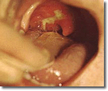 มีไข้ต่ำๆต่อมาจะมีไข้สูง มีแผ่นเยื่อสีขาวแกมเทาที่บริเวณผนังลำคอ ทอนซิล บริเวณช่องคอจะบวมแดง